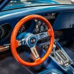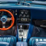 Dressed in a striking blue exterior, this Corvette exudes a sense of elegance and sophistication. The timeless design, highlighted by sleek lines and a muscular stance, showcases the car’s aggressive nature. The blue color adds a touch of sophistication, accentuating the car’s classic appeal and ensuring it stands out from the crowd.