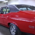 The exterior of this 1972 Chevrolet Nova SS is finished in a bold and eye-catching red, which beautifully highlights its muscular lines and iconic silhouette. The striking color choice is a statement in itself, making this car stand out among the crowd and turning heads wherever it goes. Complementing the vibrant exterior, the interior is elegantly appointed in black, offering a sleek and sophisticated cabin that perfectly complements the car’s exterior aesthetics.
